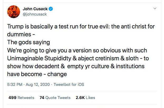 John Cusack Compares Trump’s Political Style to Hitler’s