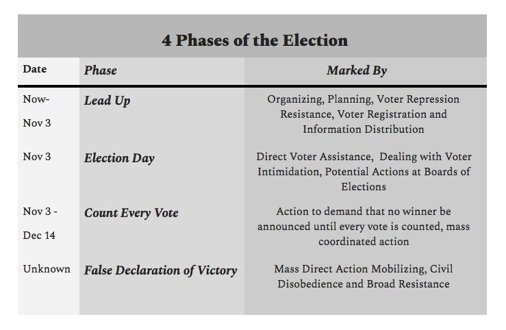 “Action to demand that no winner be announced until every vote is counted, mass coordinated action.”