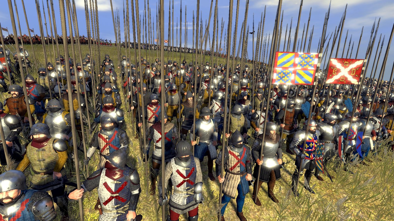 The French knights charged, and they got pushed into the pikes by the men behind them.