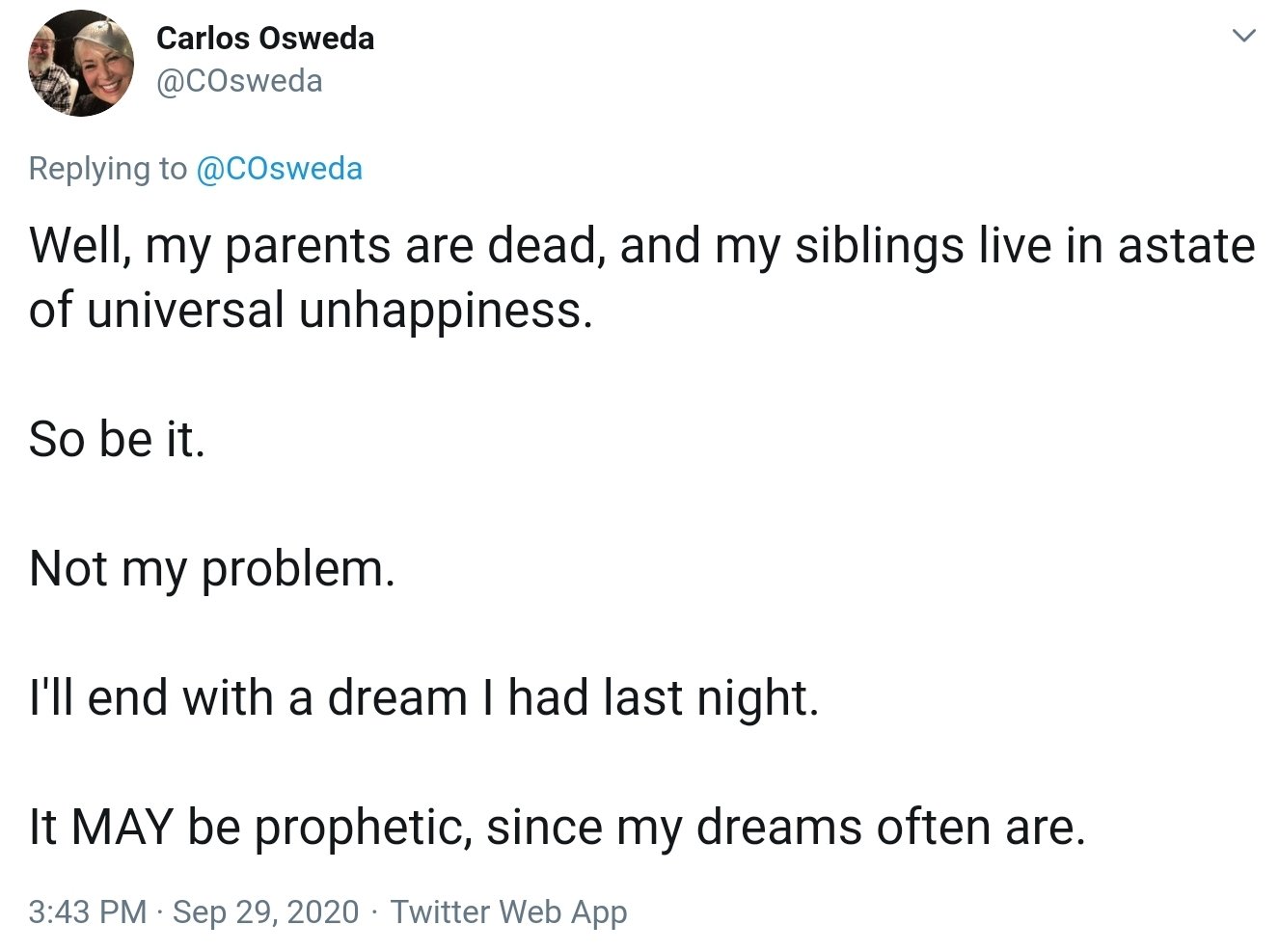 (All Carlos Osweda threads are reposted without alteration. Proceed with caution, candor ahead.)
