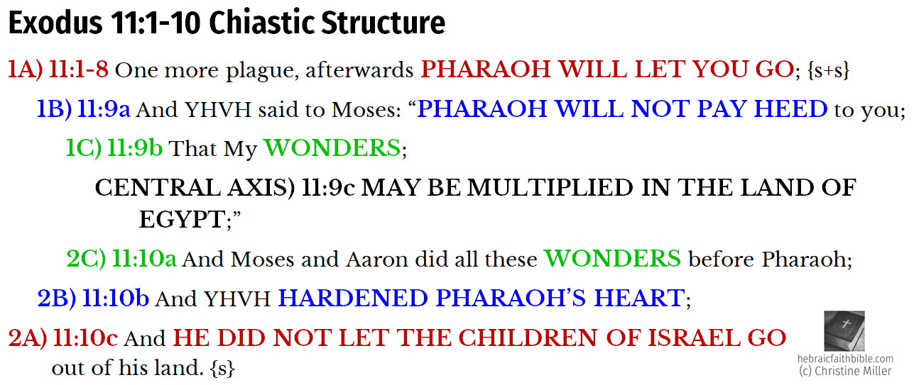 11:9-10 {s} Pharaoh will/ did not heed and wonders multiplied in Egypt