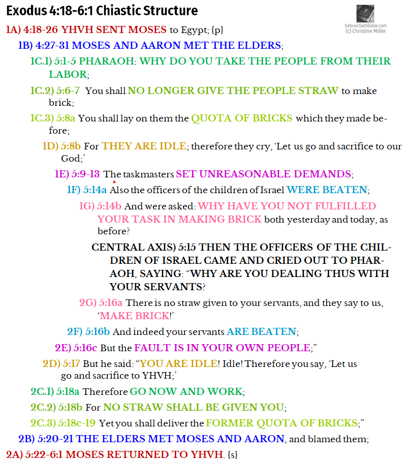 Exodus 4:18-6:1 {p+s} resolves into the following Chiastic Structure: