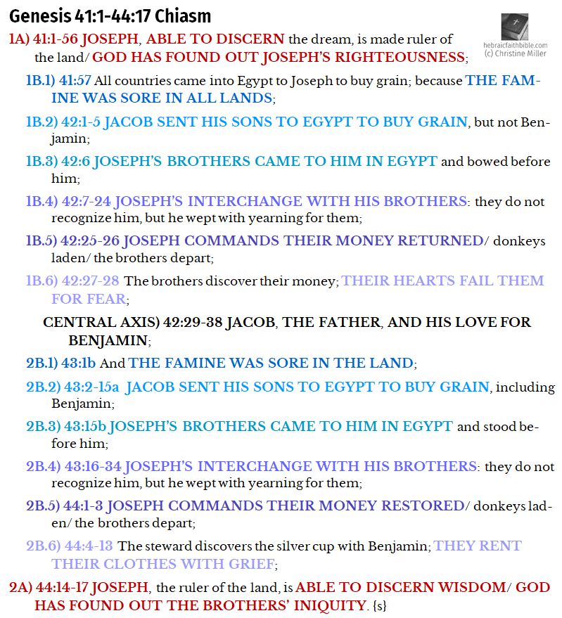 Why This Matters: Look again at Gen 42:29-38, the central axis for the Gen 41:1-44:17 Chiastic structure—it highlights the greatness of the father’s love for his son. Please do not miss this: Judah stands in Messiah’s place in the Prophetic Type, but we—those for whom Messiah substituted Himself—are in Benjamin’s place! Oh, the greatness of the love and the mercy of God! We have scarcely comprehended it! ♥